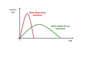Näiteks kui süüa vahepalaks täisteraleiba, mis on madala GK-ga, tõuseb insuliini tase veres aeglaselt. Kui süüa aga kaks kommi, mis on kõrge GK-ga, vabaneb insuliin kiiresti (vaata joonist).
